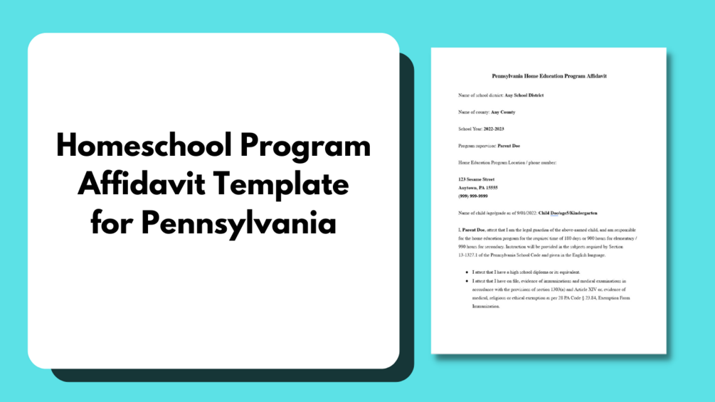 A template for creating the Homeschool Program Affidavit for Pennsylvania. Updated July 24, 2022.